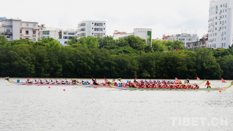 圖為第十二屆全國少數民族傳統體育運動會龍舟項目中海南隊男子組運動員正在比賽 攝影:劉莉