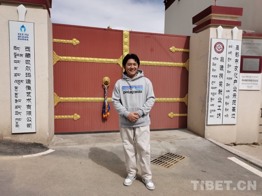 小伙子名叫嘎瑪次仁朗加(后文簡稱朗加),是巴爾瑪錘揲法造像技藝第八代傳承人,1995年出生在昌都市卡若區嘎瑪鄉,13歲跟隨父親學習巴爾瑪錘揲法造像技藝,至今已有16年。