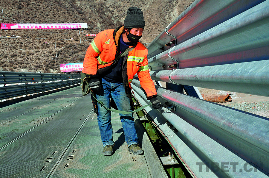 在西藏公路上行車(chē),往往能見(jiàn)到忙碌的養(yǎng)護(hù)人。他們要么揮锨清除公路邊的雜物,要么驅(qū)車(chē)沿途巡查,要么在群山中清除路障,要么在緊鋼架橋護(hù)欄上的螺絲。在一條條公路上,川流不息的不僅有車(chē)輛,還有勇往直前的徒步者。有沒(méi)有人注意到,自己春夏秋冬能在西藏大地上自由穿梭,是因?yàn)楦咴系拇舐菲教箷惩ā樗麄儽q{護(hù)航的,正是那些猶如盛開(kāi)在山腳下、公路旁黃色小花的養(yǎng)護(hù)人。