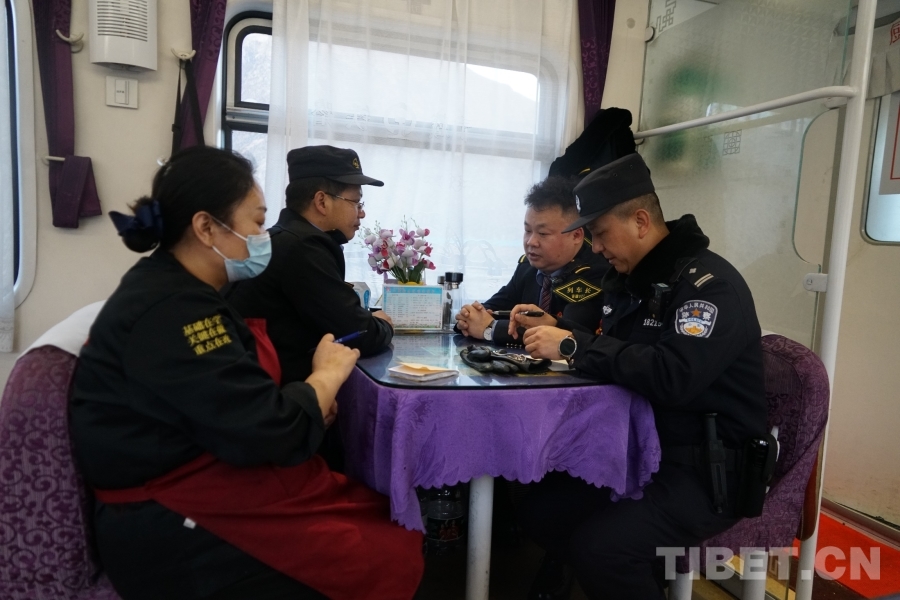 “你有沒有發現上車的每個人都是喜洋洋的樣子?這個能看出來的。這個時間出藏的列車嘛,意味著大家要去團聚嘛!等到年后,進藏的列車上,大家的表情就更凝重一些。我干那么多年了,一眼就能看出來!”“那您呢?您是喜洋洋還是憂郁呢?常年奔波于列車上,還是高海拔的列車上,不能陪家人過年,您會有愧疚嗎?”李警長眼神略顯憂傷后又打起精神來:“想回家過年!不過我要去餐車開餐車會議了,我們‘五位一體’必須全部到場。”