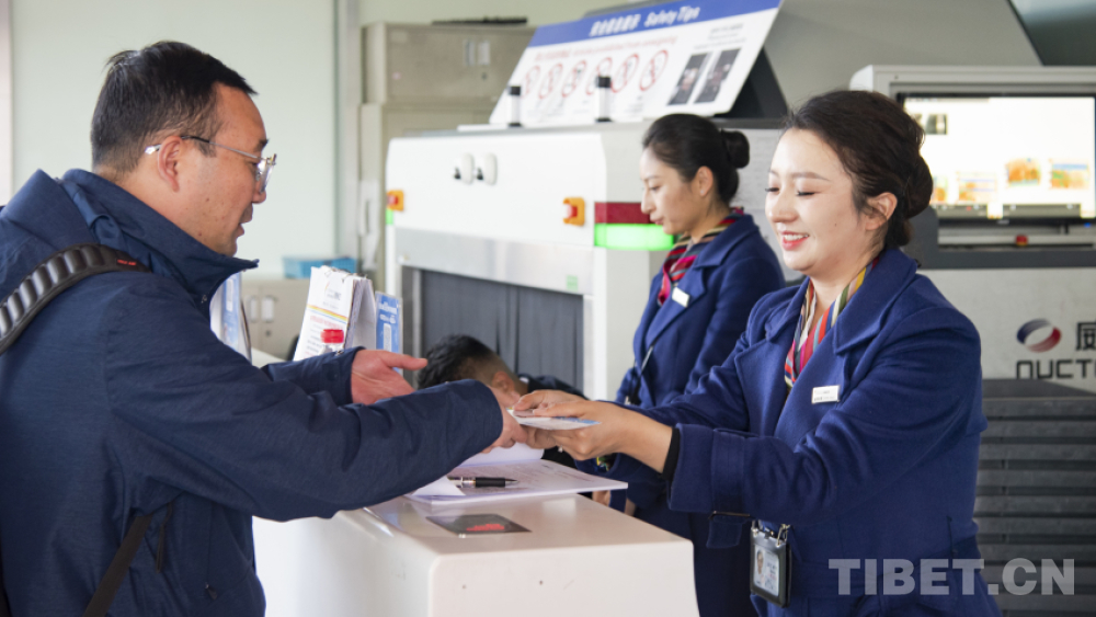 起立、問候、辦理行李托運、遞送登機牌……這看似簡單的話語和動作,每名值機員每天都要重復數百次。春節期間旅客增多,值機、安檢等環節比平時要花費更多時間,西藏航空的每一位值機員都盡可能提前告知旅客不要帶違禁品過安檢,以免開包檢查、折返托運耽誤乘機時間。