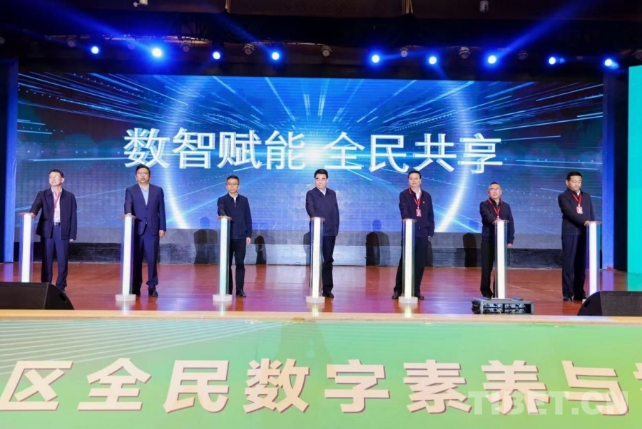 圖為與會嘉賓啟動2025年西藏自治區全民數字素養與技能提升月活動