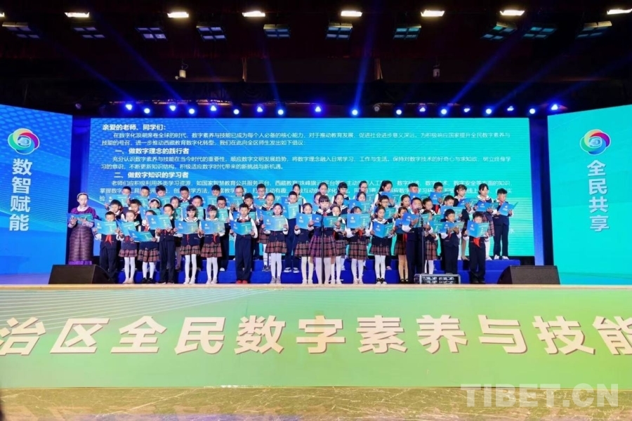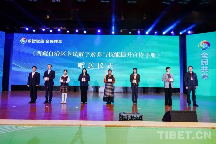 啟動儀式上,活動主辦方為社會各界代表贈送了國家通用語言文字版本、藏語版本的《西藏自治區全民數字素養與技能提升宣傳手冊》;為西藏自治區全民數字素養與技能提升典型案例(網絡作品)頒發證書;為第二批自治區級全民數字素養與技能培訓基地授牌。社會各界代表圍繞數字賦能作主題分享,師生代表向全區師生發出“提升師生數字素養與技能 共建共享數字化發展成果倡議書”。