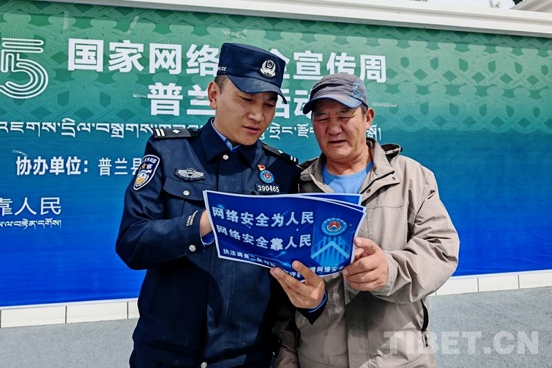 中國西藏網訊 9月17日,西藏邊檢總站執法調查二隊緊扣“網絡安全為人民,網絡安全靠人民”主題,組織民警深入阿里地區普蘭縣人流量較大的商場、社區廣場等,開展形式多樣的網絡安全宣傳教育活動,將守護網絡安全的種子播撒到邊境群眾身邊。