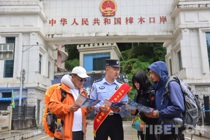 圖為聶拉木邊檢站民警向出入境旅客講解網絡安全知識