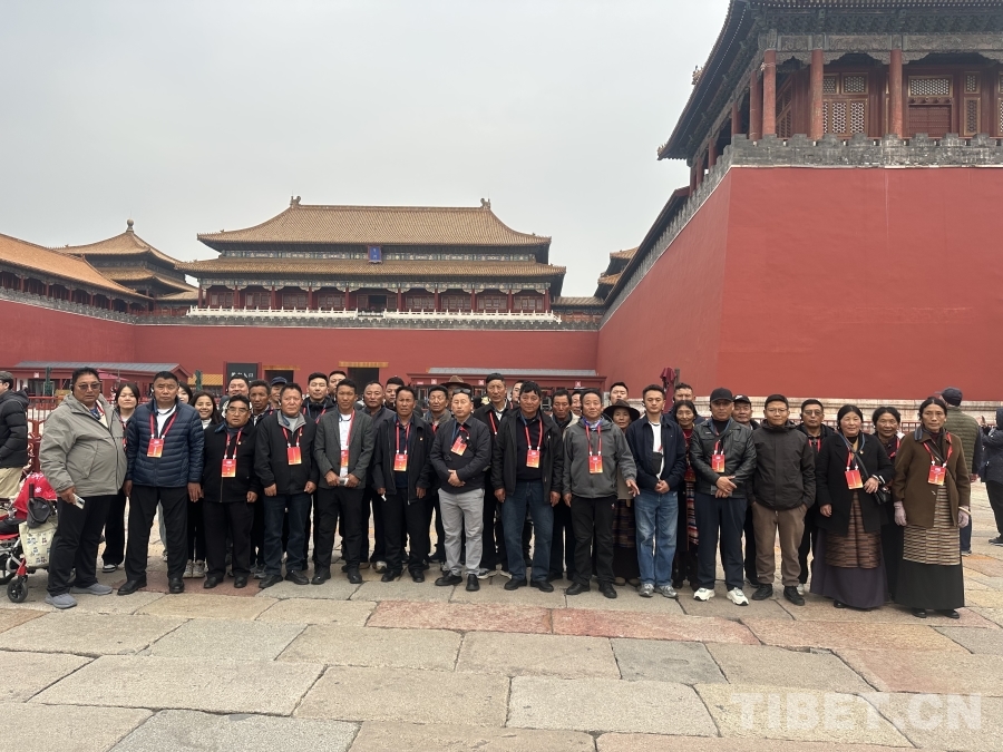 圖為西藏自治區(qū)林芝市波密縣基層干部學習參觀團在故宮博物院合影 攝影:李文治