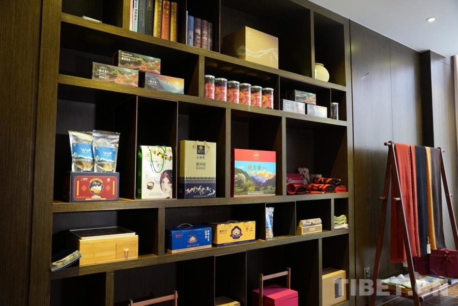 在友茗天茶室所展陳的來自雪域高原的產品 攝影:周雯