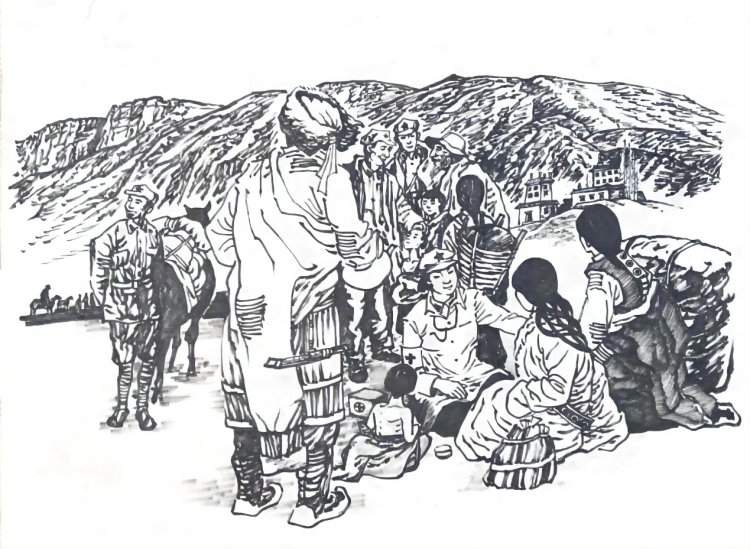 紅軍醫生與藏族百姓(四川民族學院郭重曦繪)