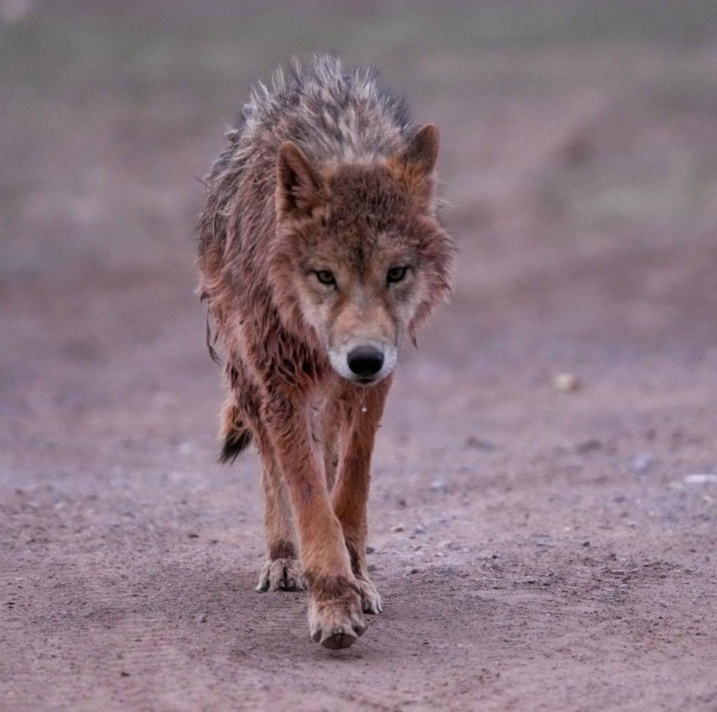 哪知第二天傍晚,這只狼又來了。這次它還沒來得及進院子,院門就被出來圍觀的人們堵住了。它來回試探,時不時往人群方向靠近,目光中充滿了乞求和討好。