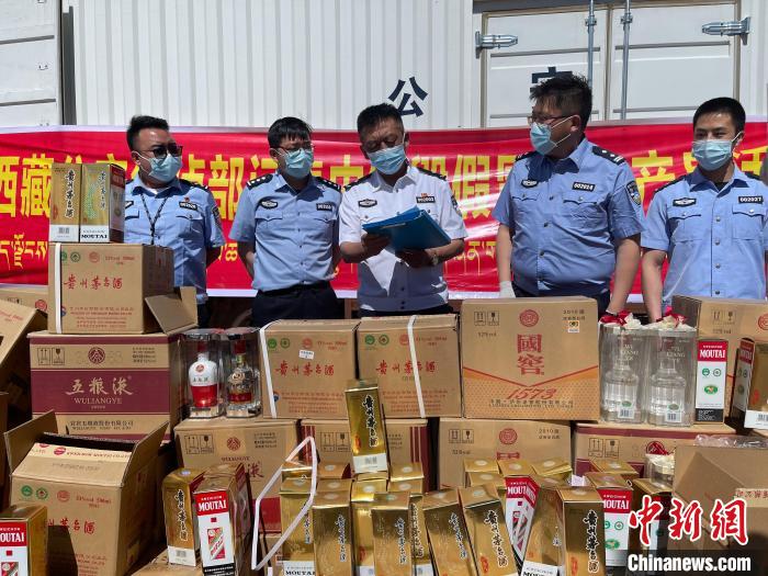 23日,西藏自治區公安廳經偵總隊銷毀案值100余萬元(人民幣,下同)高檔名貴假酒。