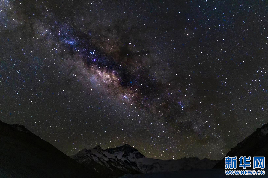 珠穆朗瑪峰上空的銀河。新華網 旦增努布 攝