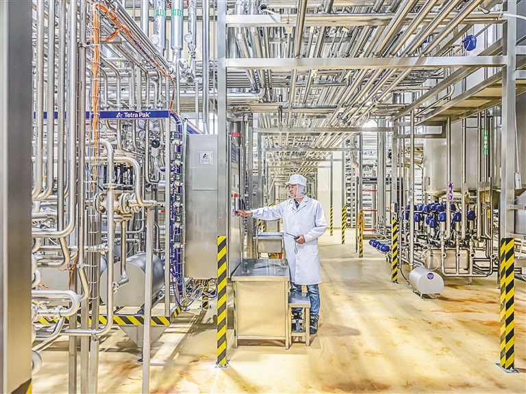 工作人員在北京市援建的西藏凈土乳業車間工作。