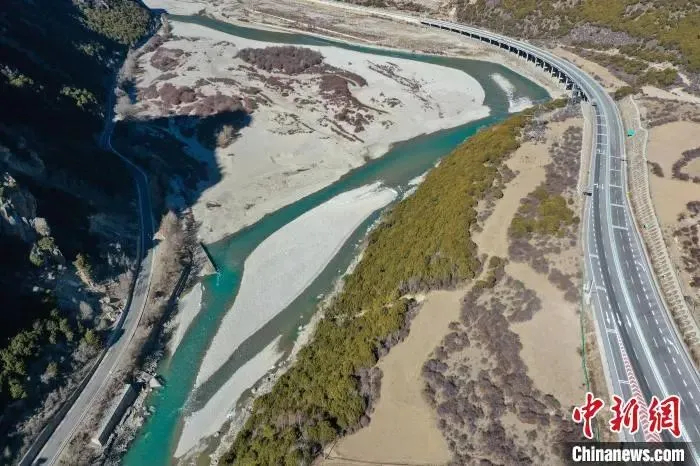 圖為部分養護路段(右)。(無人機照片)中新社記者 貢嘎來松 攝
