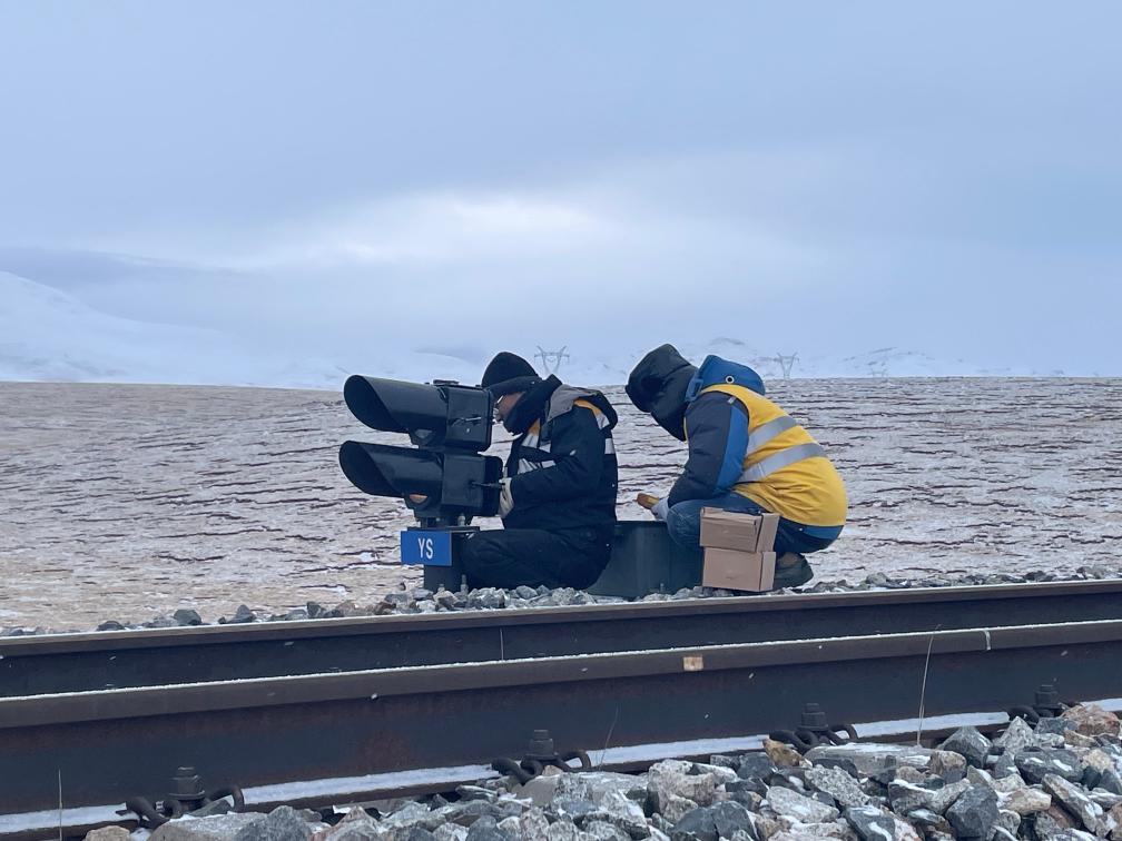 春運(yùn)期間,在海拔4700多米的青藏鐵路安多火車(chē)站,西藏那曲信號(hào)車(chē)間安多信號(hào)工區(qū)的工人們正頂風(fēng)冒雪,爭(zhēng)分奪秒,確保鐵路信號(hào)設(shè)備的正常運(yùn)行,為旅客的平安出行保駕護(hù)航。