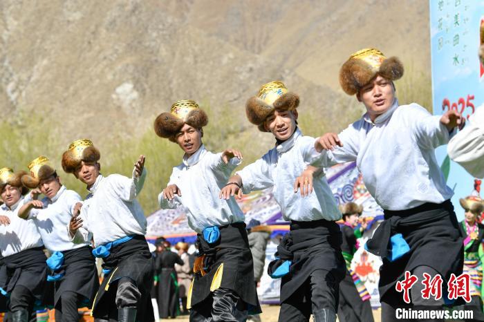 3月16日,在西藏自治區拉薩市曲水縣,人們載歌載舞慶祝春耕開耕。中新社記者 貢嘎來松 攝