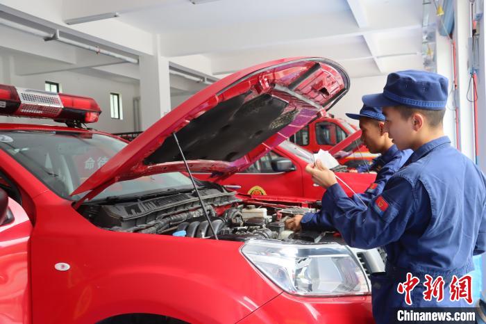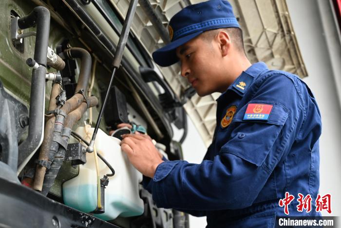 圖為消防員正在保養車輛。西藏林芝市森林消防支隊供圖