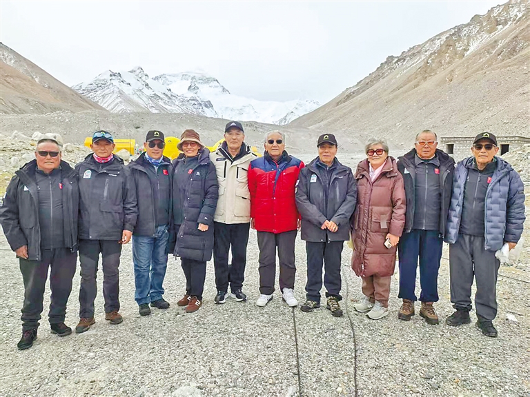 2025年5月6日,登山勇士們參加紀念中國人再登珠穆朗瑪峰50周年系列活動之“登山勇士緬懷活動”時合影。記者 鄭璐 攝(除本圖外的其他圖片均由西藏自治區登山隊提供)