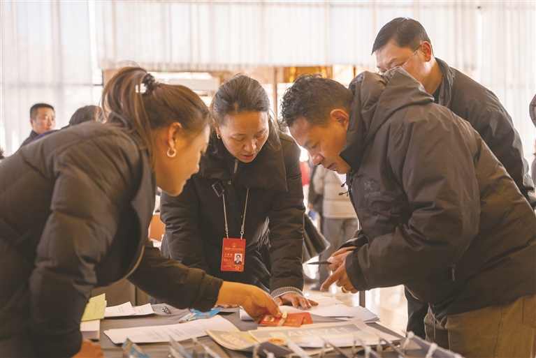 在政協委員報到處,工作人員提前就位,細致講解會議安排,用貼心服務為委員們履職保駕護航。