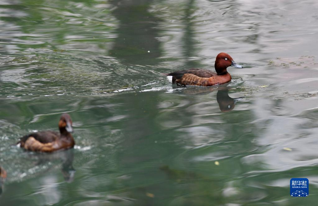夏日里,白眼潛鴨和鳳頭潛鴨在西藏拉薩市拉魯濕地國家級(jí)自然保護(hù)區(qū)中干渠里覓食、嬉戲。