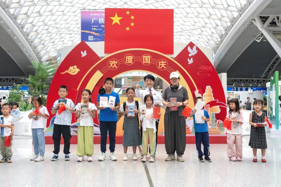 10月1日,廣州南站在三層候車廳組織開展歡度國慶暨“文明出行·書香廣南”快閃活動。廣州南站職工初心藝術團成員帶來快閃表演《坐著高鐵看中國》,并與旅客共唱《我和我的祖國》,共同祝福祖國繁榮昌盛!