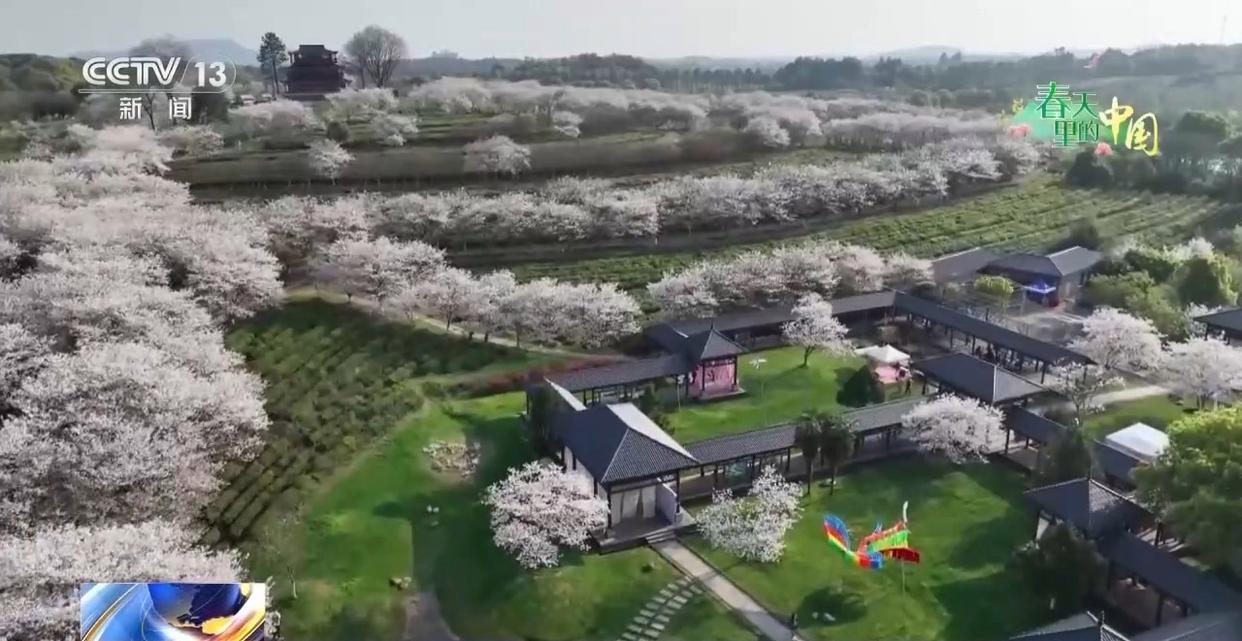 沿著繡球花海繼續前行,景區千畝櫻花迎來了進入觀賞期。這里的櫻花套種在漫山遍野的茶園中,層次分明,形成“遠看是茶海,近看是花海”的獨特景觀。花枝輕垂在茶壟,花香混合著茶香在空中彌漫,沁人心脾。